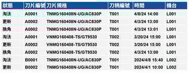 ✅ 可視化儀表板讓每支刀具的狀態一目瞭然